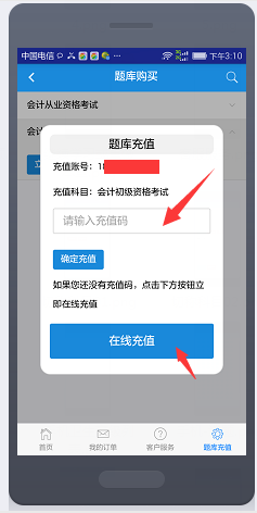 1.如果您已在考轻松经销商处购买了手机端充值码或购买考轻松软件(仅限医卫系列)获赠手机端充值码,可以直接充值。